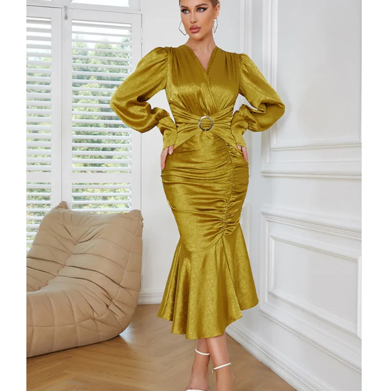 Женское длинное приталенное платье, облегающее платье из искусственного шелка с оборками и складками, вечернее платье знаменитости