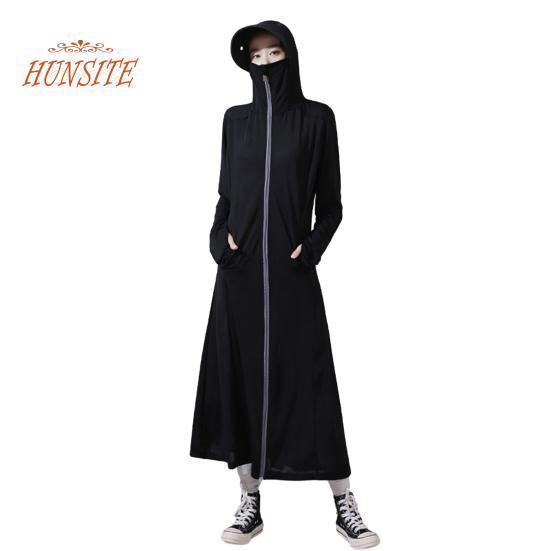 Женское длинное солнцезащитное пальто с капюшоном и длинными рукавами, защита от УФ-лучей, мягкое дышащее тонкое ледяное шелковое пальто на молнии, свободное поглощение пота L чёрный