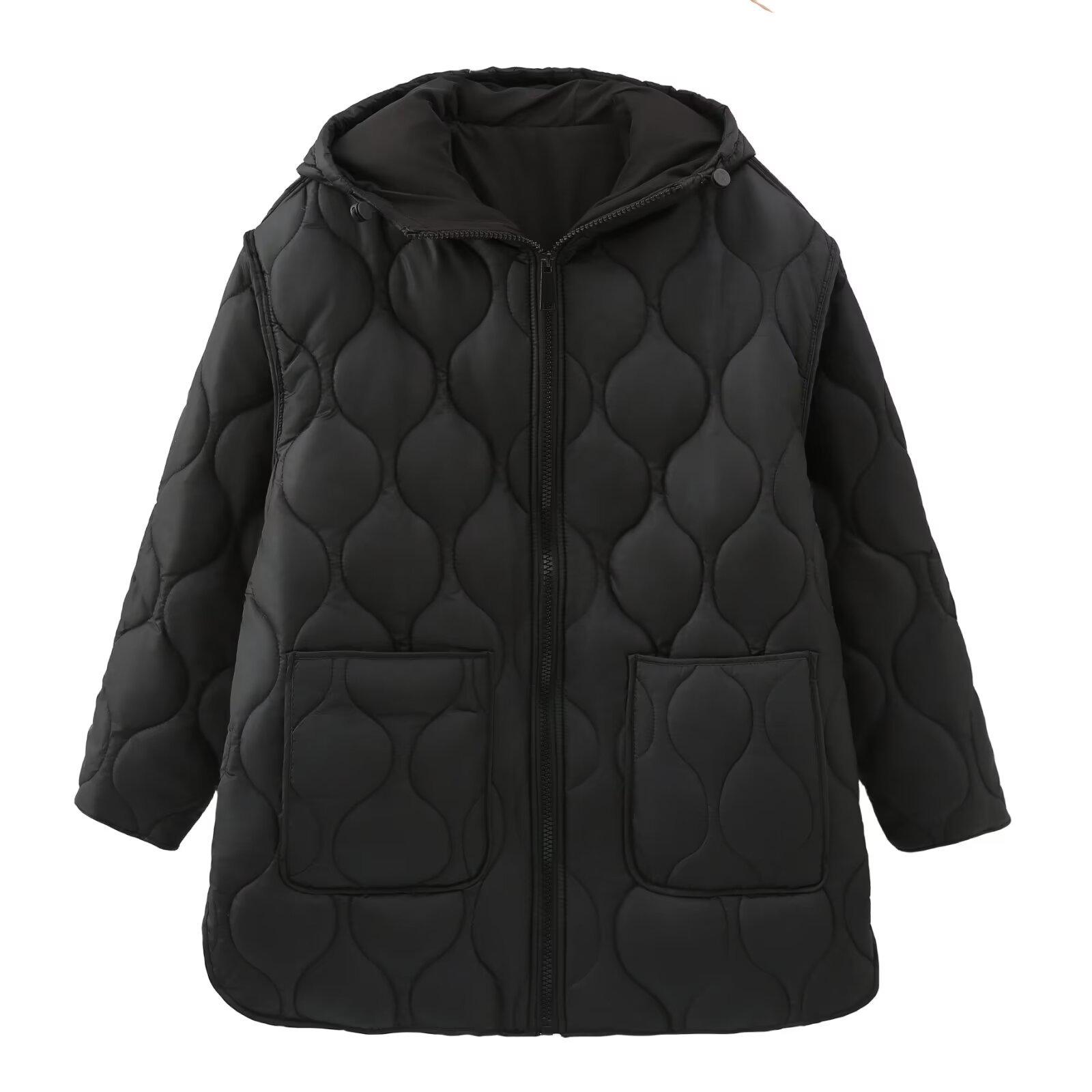 Женское длинное хлопковое пальто с капюшоном в европейском и американском стиле с карманами для весны и осени Large чёрный