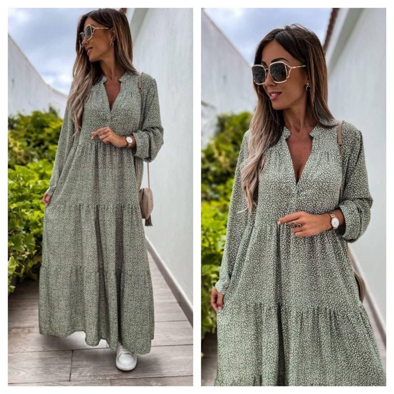 Женское длинное шелковое платье оливкового цвета SKL92-358554