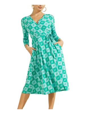 Женское зеленое платье миди с запахом и рукавами 3/4 GUESS, размер, Зеленый