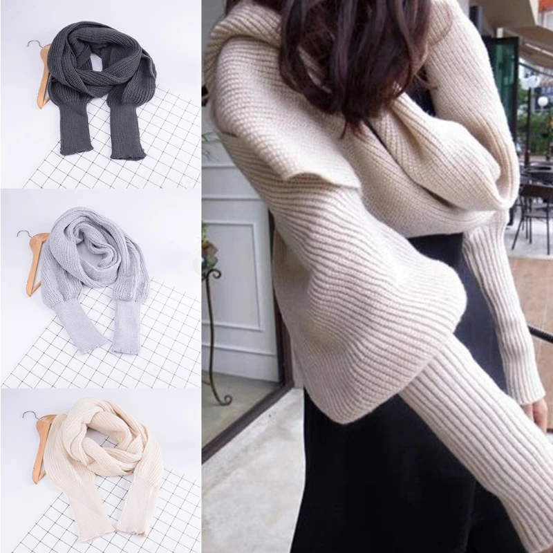 Женское зимнее вязаное одеяло, длинная шаль с рукавами, однотонный свитер, шарф
