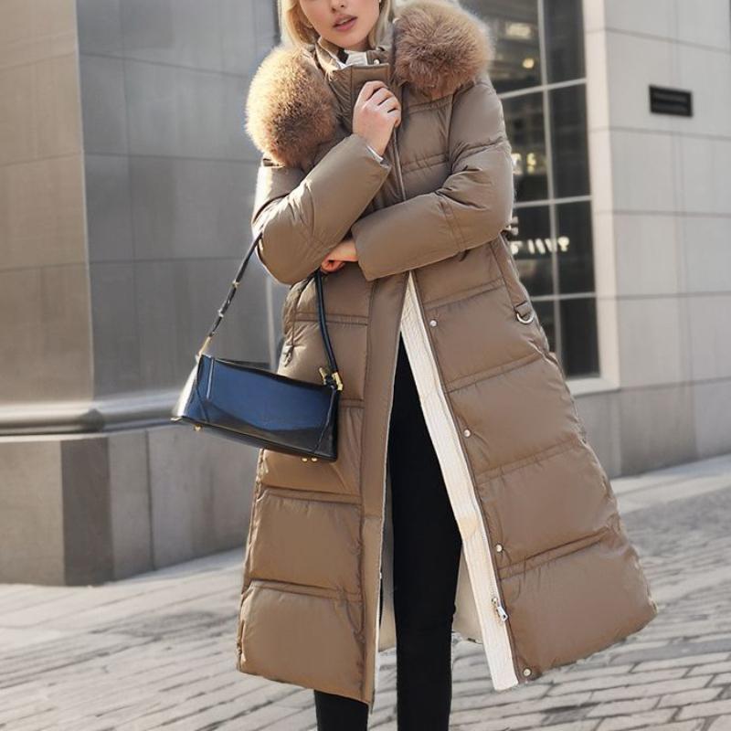 Женское зимнее длинное пальто, приталенная куртка с поясом, модное женское зимнее пальто, зимняя куртка, одежда для зимы, пальто с капюшоном M коричневый