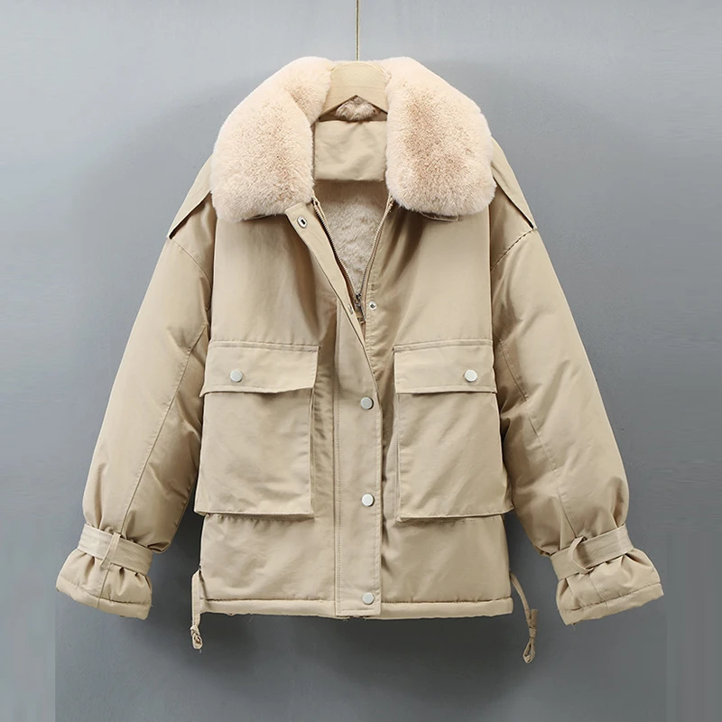 Женское зимнее короткое пальто с подкладкой и отложным воротником, на молнии