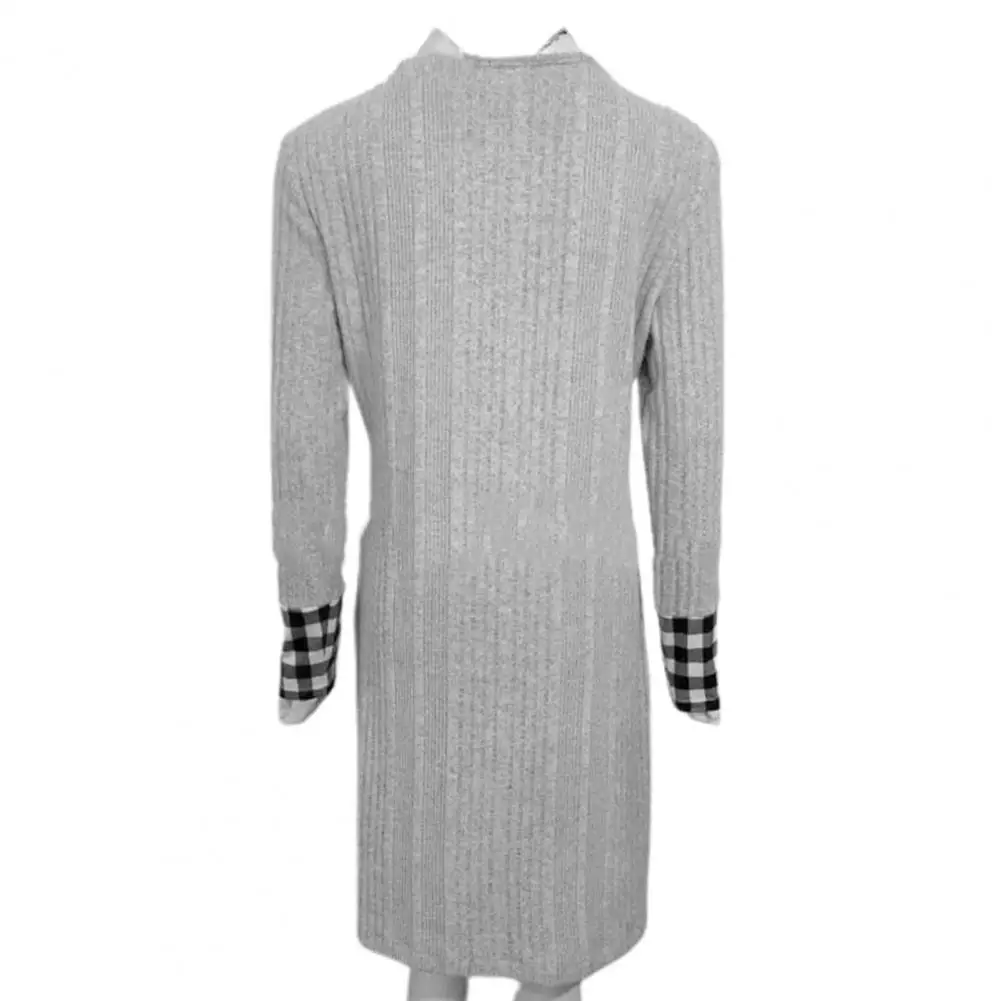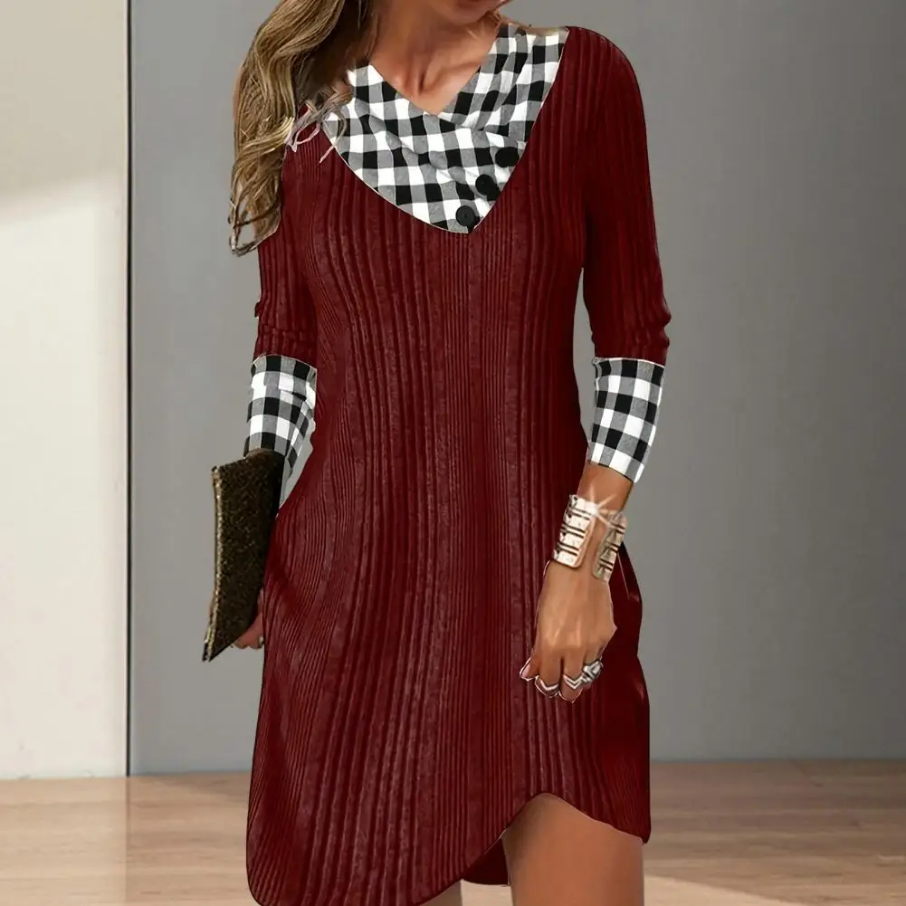 Женское зимнее мини-платье в клетку, с V-образным вырезом