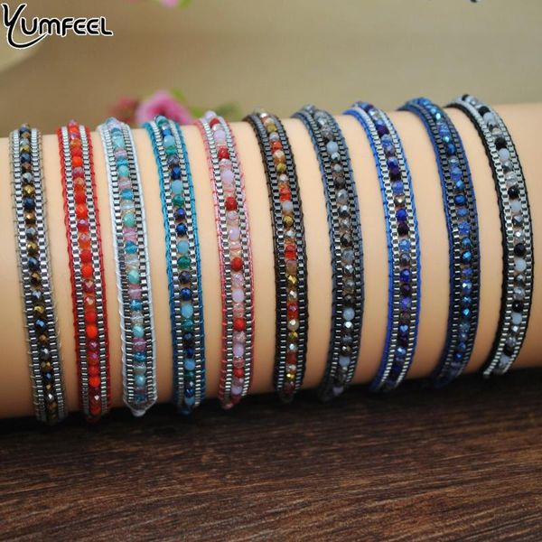 yumfeel new bracelet glass crystal beaded bracelet 10 colors women's friendship adjustable bohemian jewelry, Black