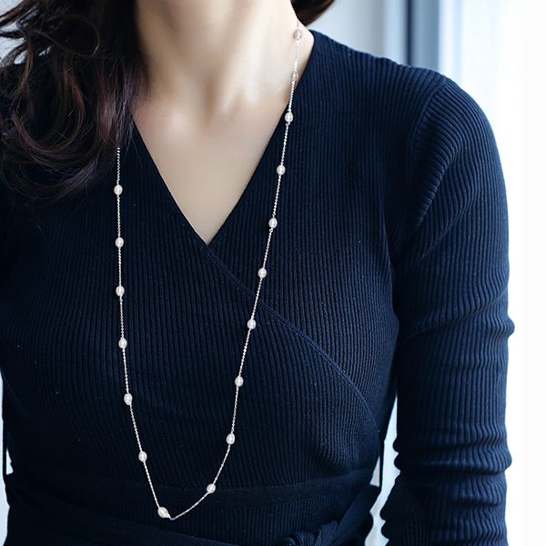 dmnfp188 sweater pearl necklace silver 925 jewelry 6-7mm long pearl necklace for women