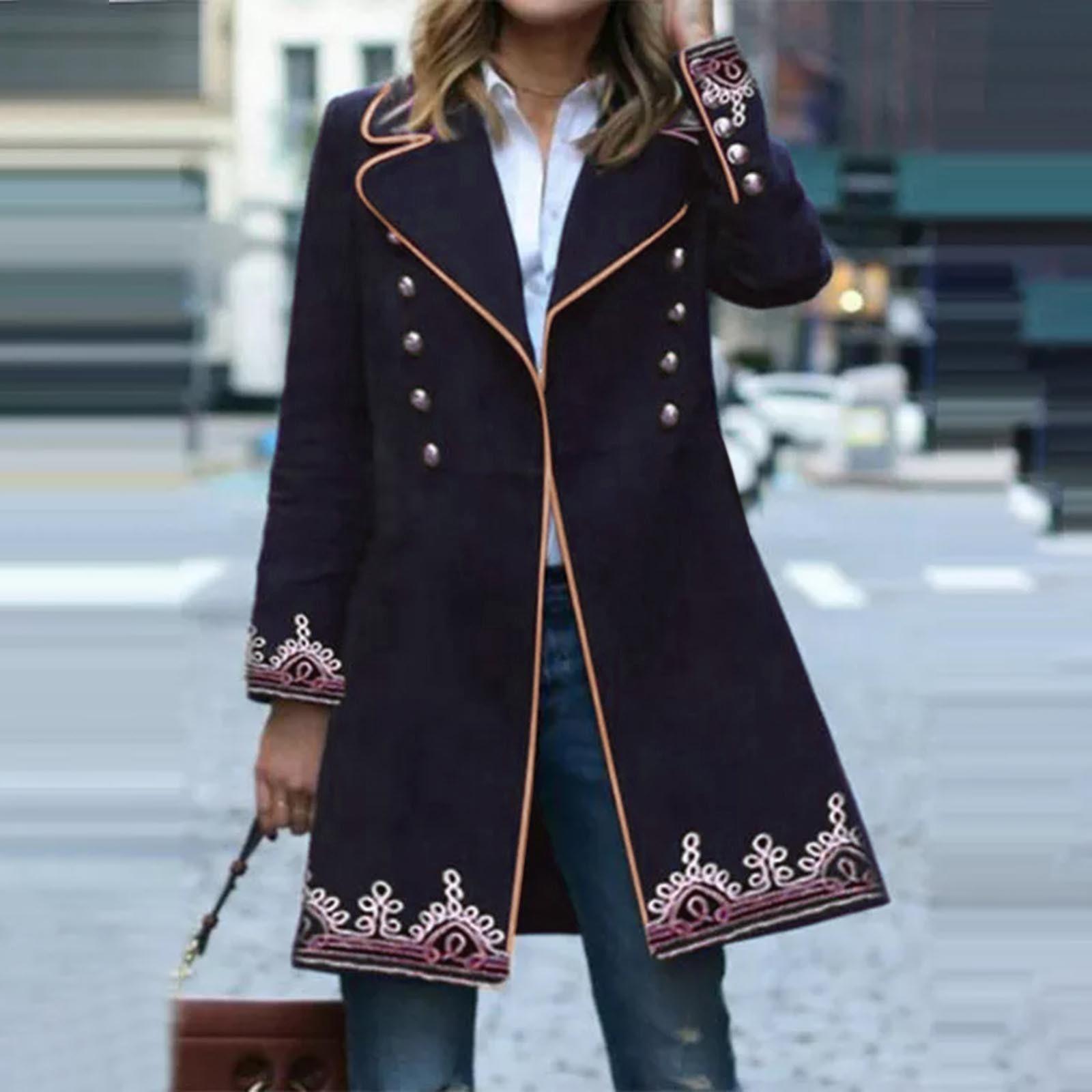 Женское зимнее теплое шерстяное пальто средней длины с длинным рукавом и принтом, верхняя одежда с карманом XL чёрный