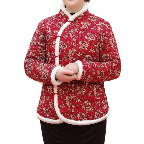 Женское зимнее хлопковое пальто с цветочным принтом без рукавов в китайском этническом стиле, подходящее по цвету стеганое толстое плюшевое теплое однобортное женское пальто больших размеров 2XL красный