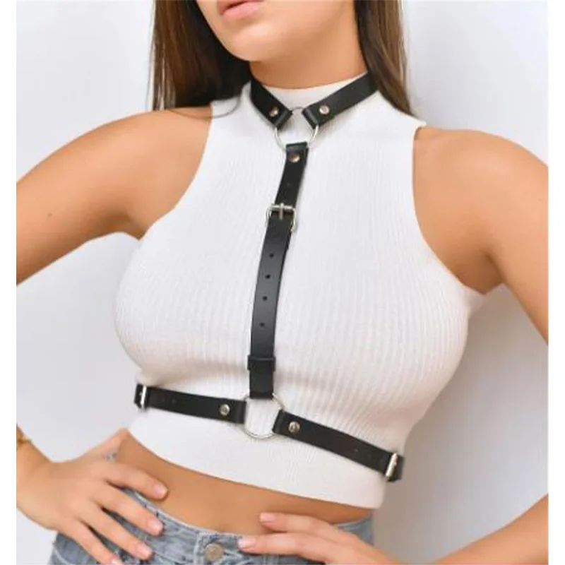 Женское кожаное нижнее белье, сексуальные подтяжки на груди, чулки, бондаж, модный бандаж, БДСМ, Эротический бюстгальтер в стиле панк, подвяз...
