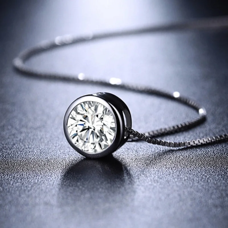 Женское колье из серебра 925 пробы с синтетическим бриллиантом
