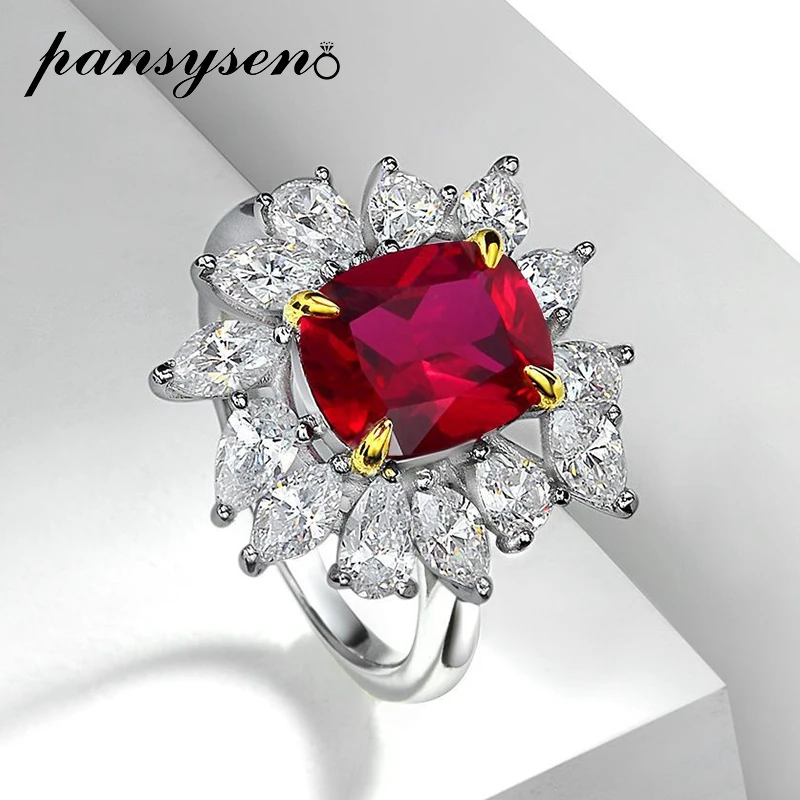 Женское кольцо из серебра 100% пробы, с граненым Рубином