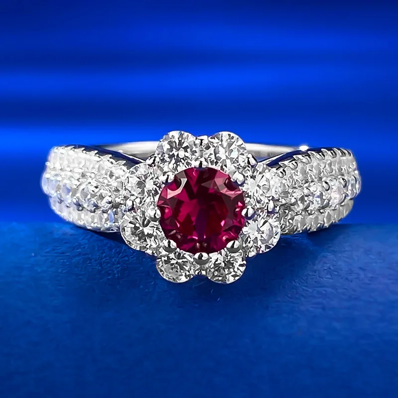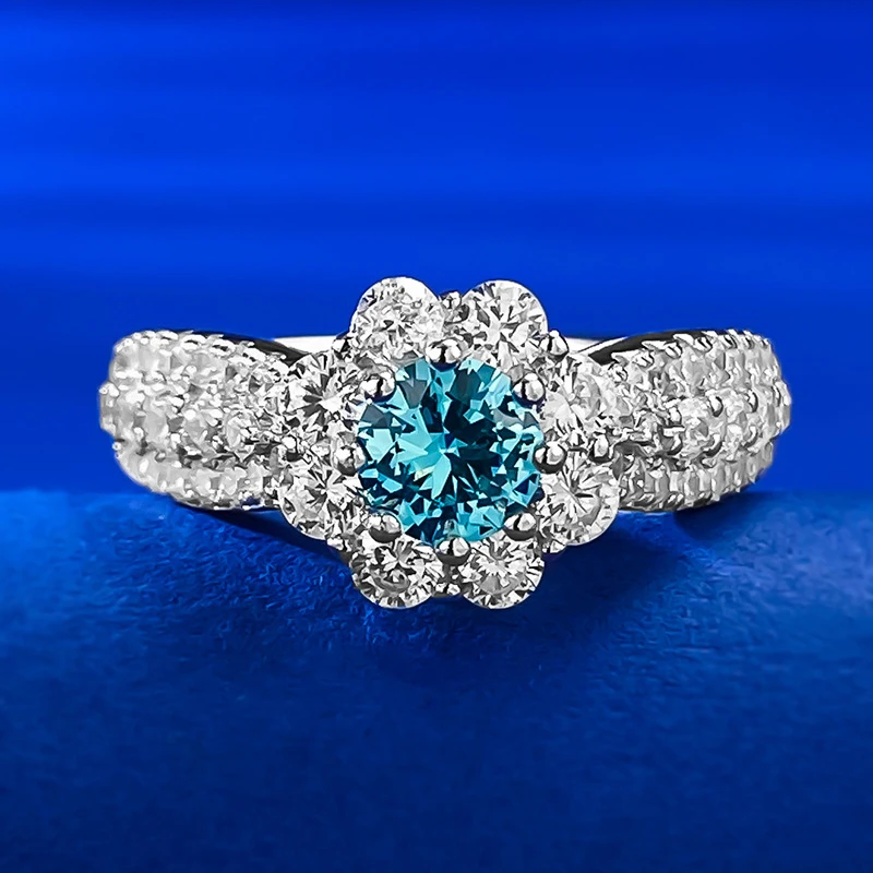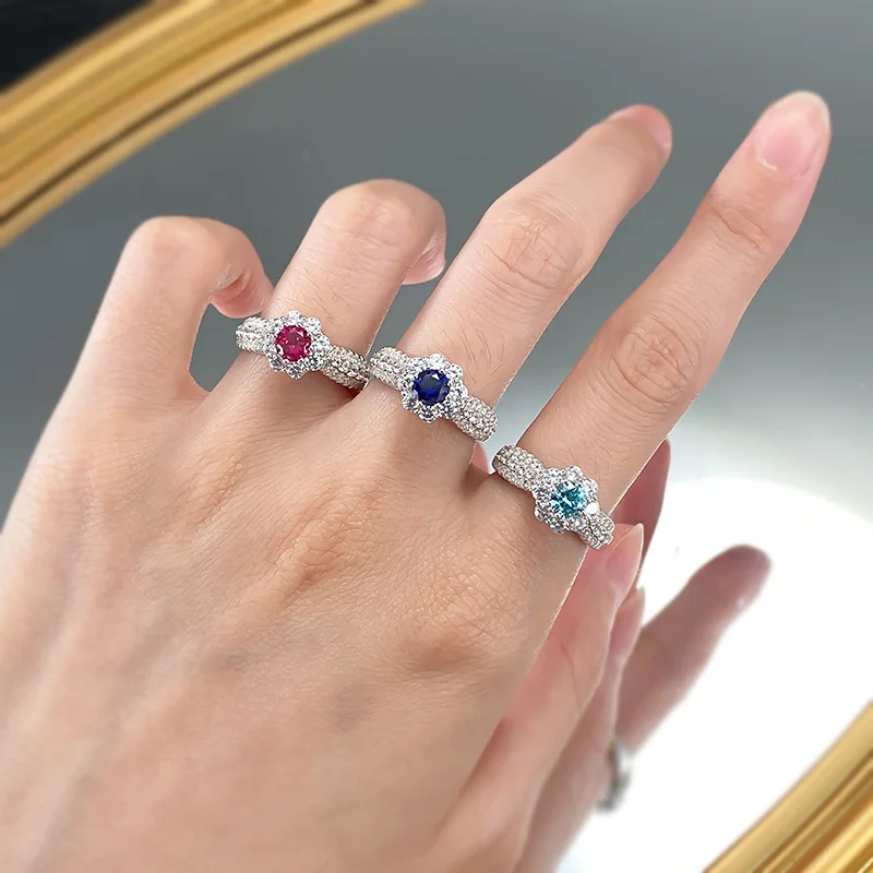 Женское кольцо из серебра 100% пробы, с круглым сапфиром, рубином и аквамарином