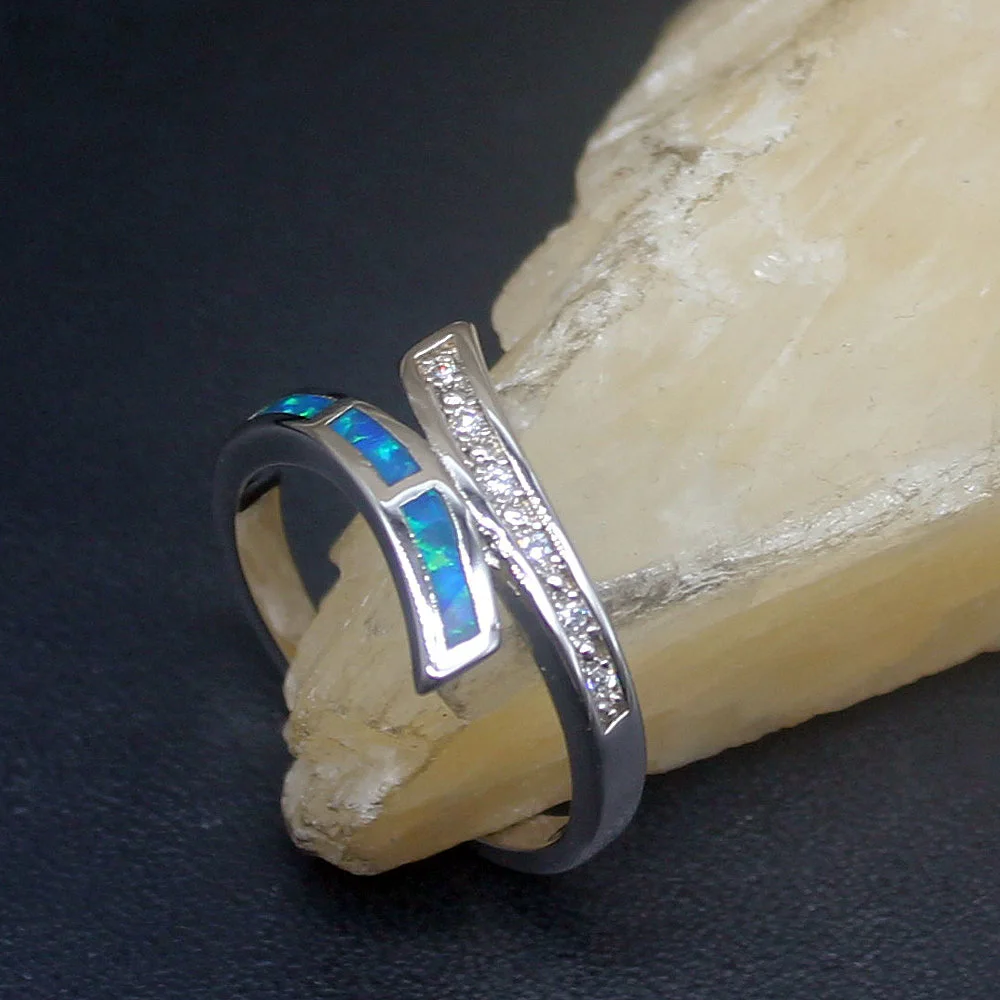 Женское кольцо из серебра 925 пробы с мистическим огненным голубым опалом, Размеры 7 #20214279