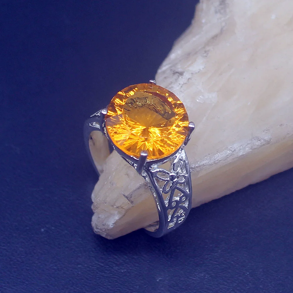 Женское кольцо из серебра 925 пробы, с натуральным медовым топазом, размеры 8,5 #20214130