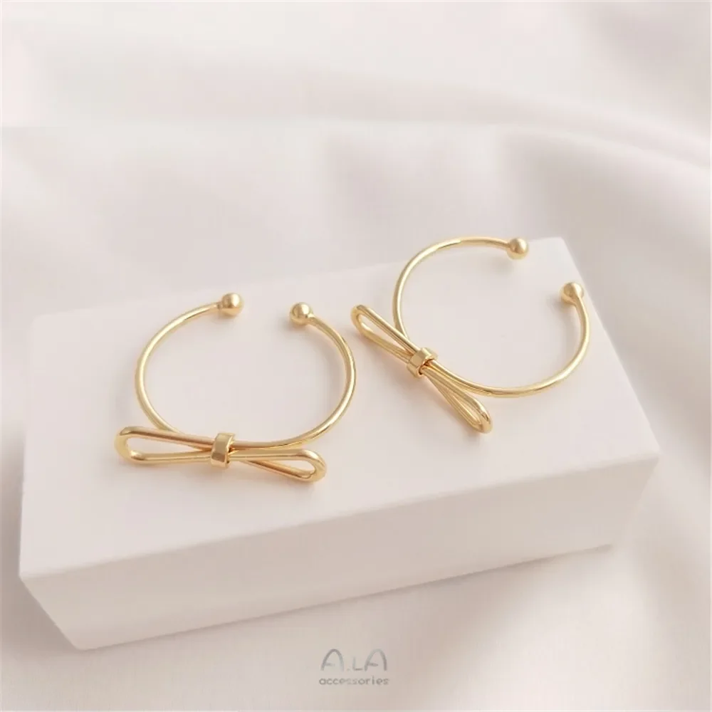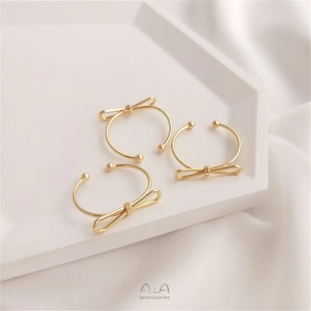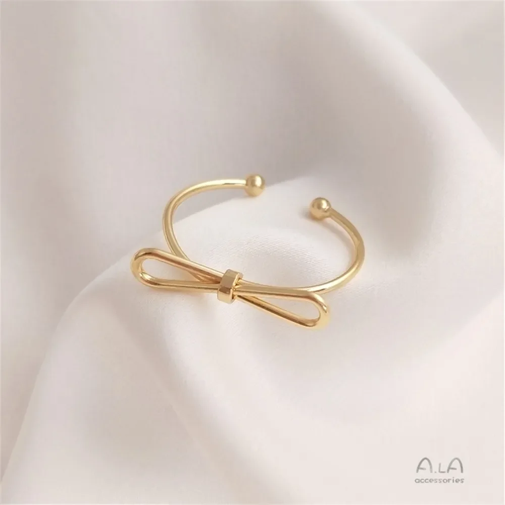 Женское кольцо с бантом, простое Открытое кольцо с красным бантом в японском и корейском стиле, 14 к