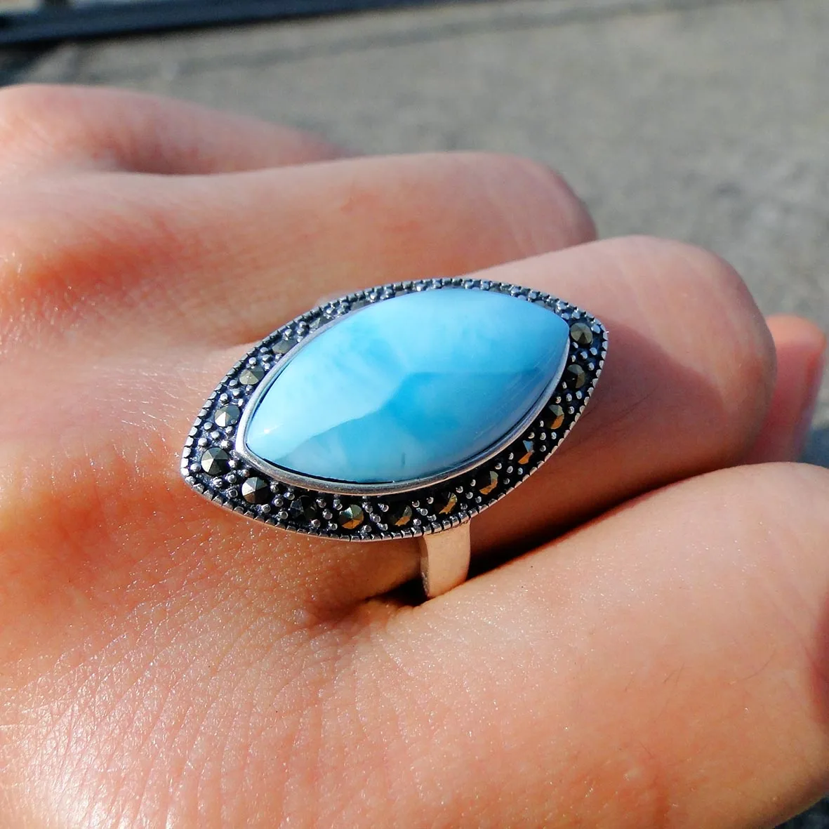Женское кольцо с натуральным камнем, 11x20 мм