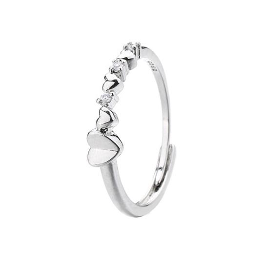 Женское кольцо с регулируемым отверстием, дизайн, блестящие стразы, инкрустированные геометрическим декоративным сердечком, кольцо на палец с любовью серебряный