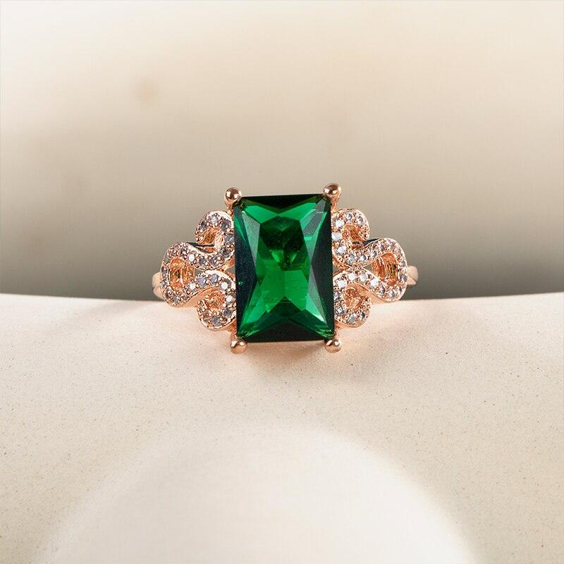 Женское кольцо Bella Box с зеленым камнем Cz, цвет розового золота, подарок на годовщину для очаровательных женских колец Resizable зелёный