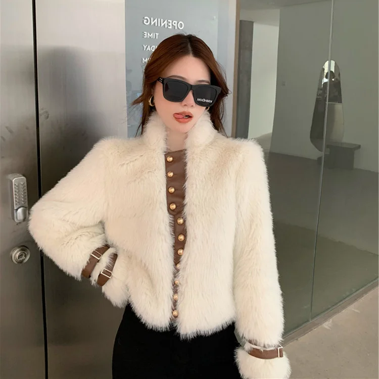Женское короткое пальто с искусственным мехом, тонкое пальто в Корейском стиле, Осень-зима 2021