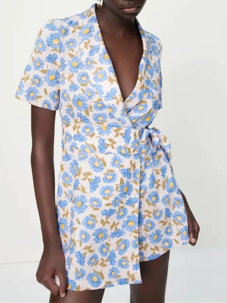 Женское короткое платье с поясом, повседневное белое винтажное платье с коротким рукавом, отложным воротником, лето 2021