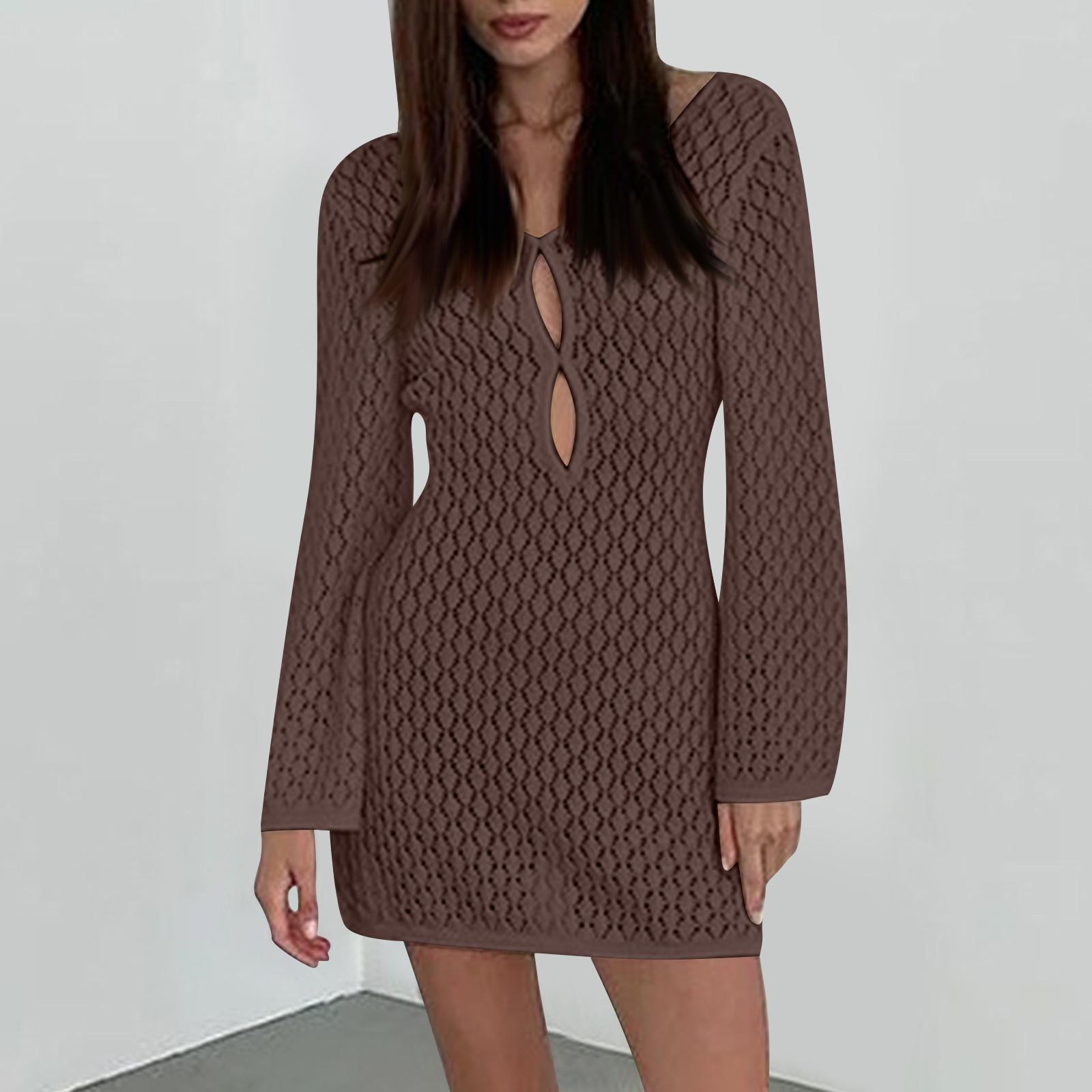 Женское короткое пляжное платье, сплошной цвет, вязаный купальник с вырезами, солнцезащитная одежда L кофейный