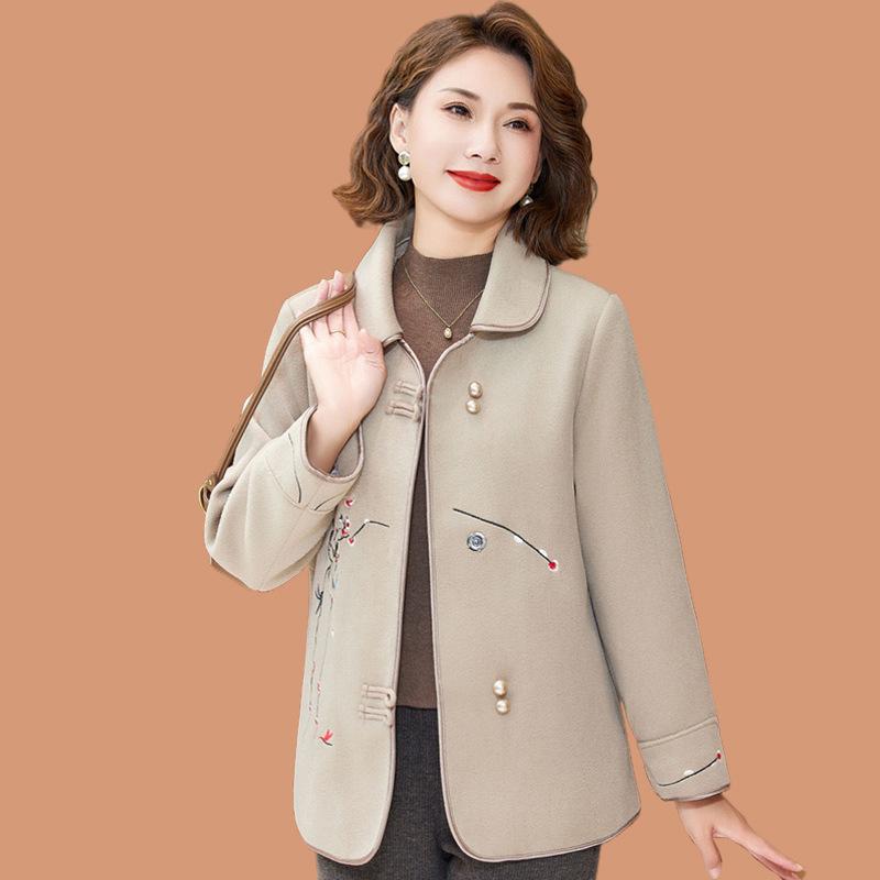 Женское короткое шерстяное пальто 2025: Стильная осенняя одежда для людей среднего и пожилого возраста 3XL (for 120-135 jin) хаки