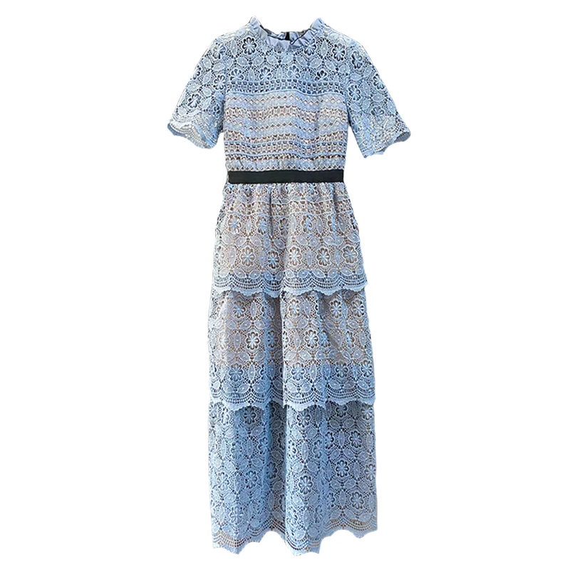 Женское кружевное вечернее платье, длинное облегающее платье с оборками, винтажное синее платье макси для подиума, лето 2020