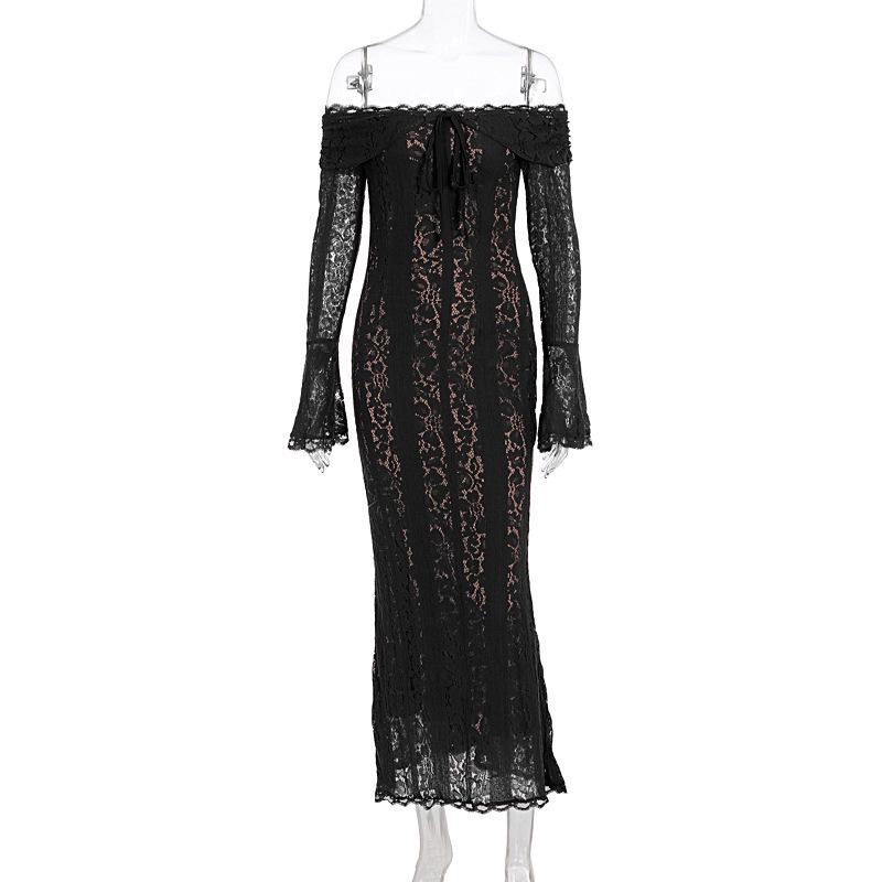 Женское кружевное вечернее платье с открытыми плечами и длинными рукавами, облегающее талию, осень 2025 M