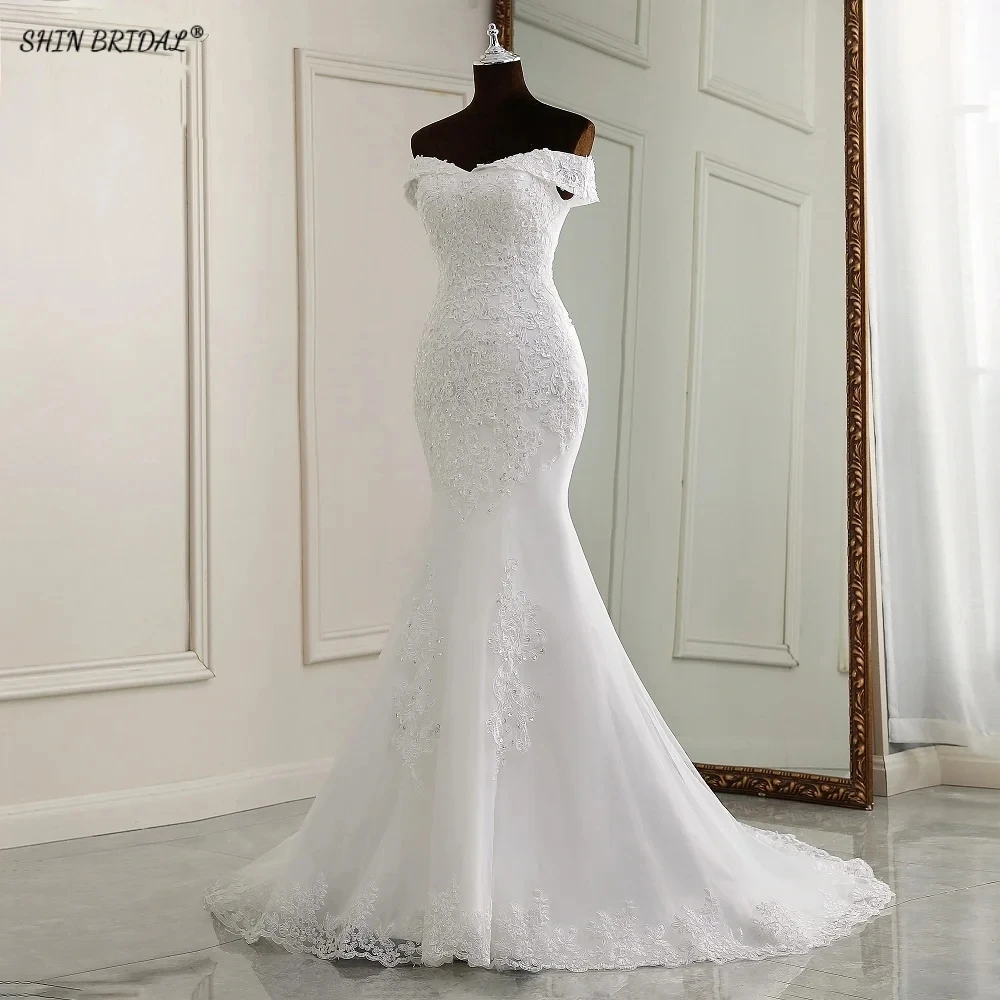Женское кружевное платье-Русалка SHIN невесты, бальное платье до пола с открытыми плечами и вырезом лодочкой, 2024
