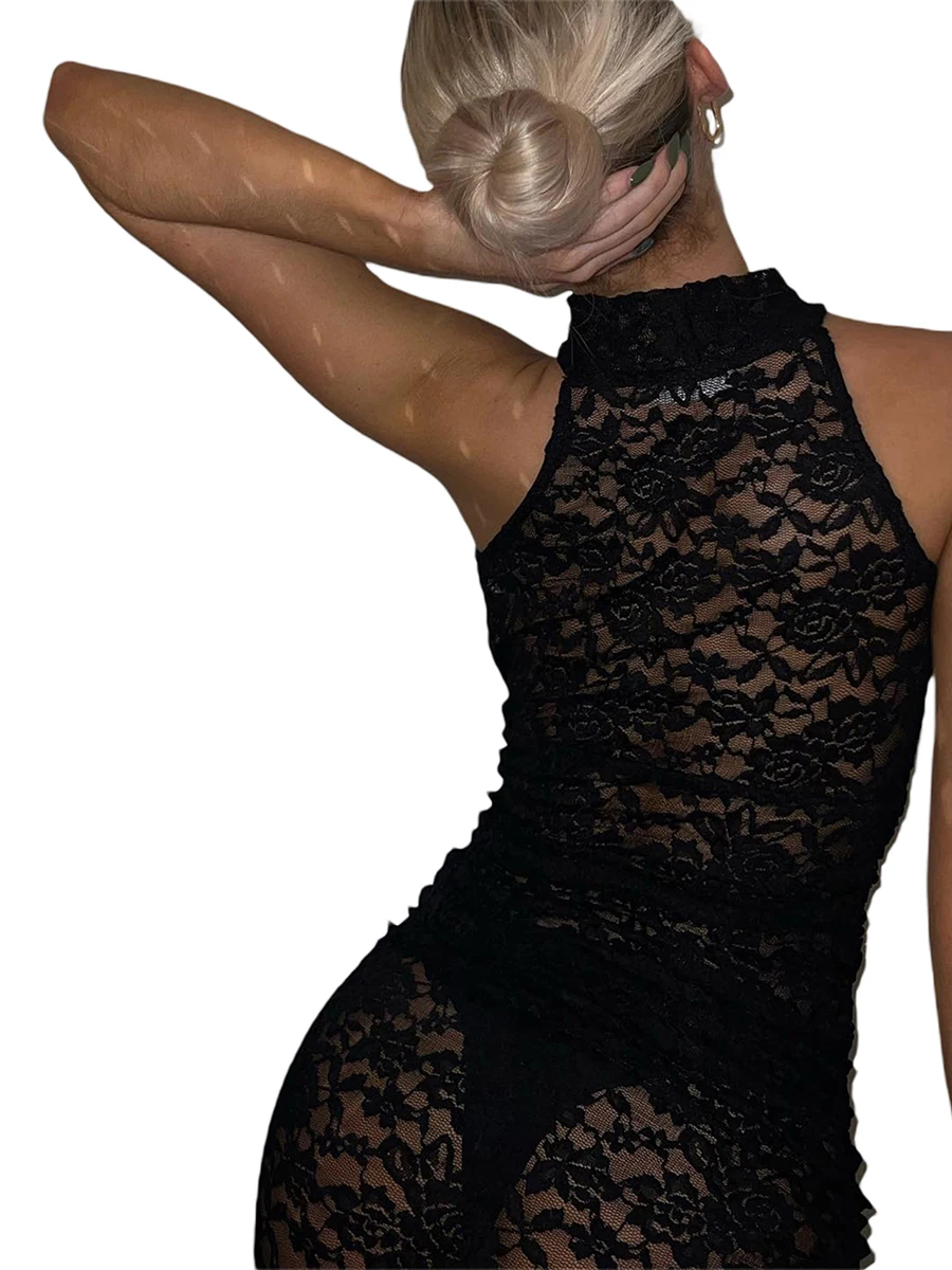 Женское кружевное платье-миди без рукавов, с ложным воротником
