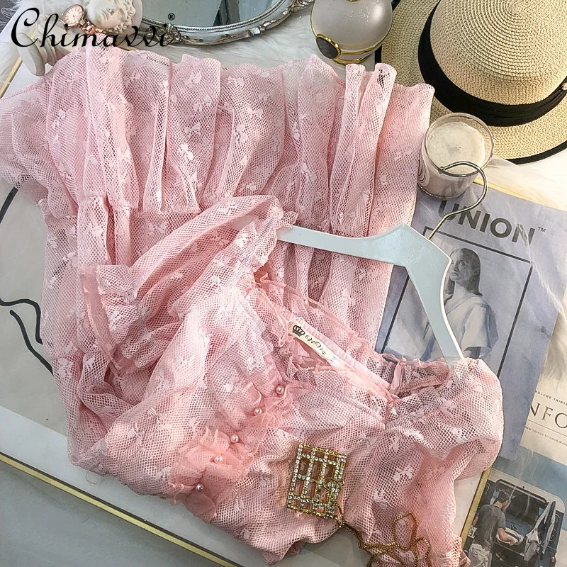Женское кружевное платье с высокой талией, изящное ажурное платье во французском стиле с квадратным вырезом, лето 2022