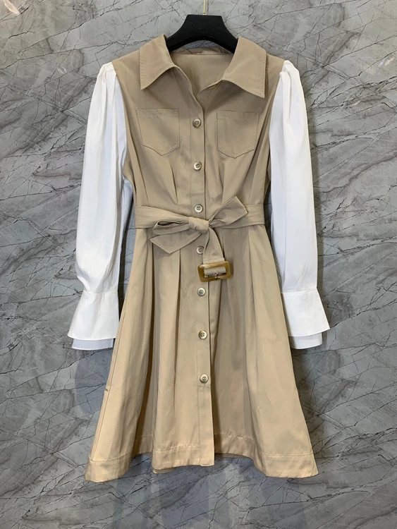 Женское кружевное платье, тренчкот с отложным воротником, юбка, подходящие цвета, 2021