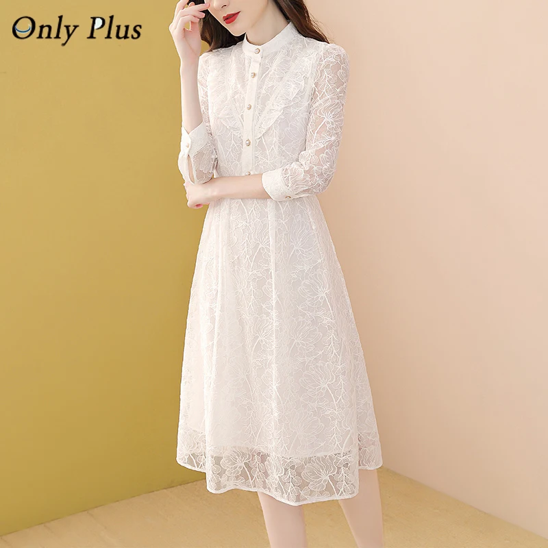 Женское кружевное платье EVNISIWhite, Осеннее Новое Элегантное однобортное облегающее платье с длинным рукавом, праздничное платье