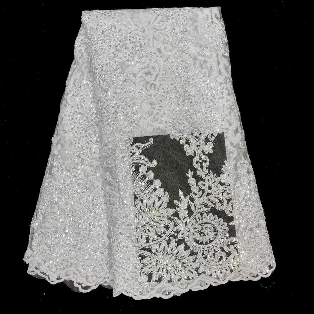 Женское кружевное свадебное платье, белая вышивка с блестками, 5 ярдов