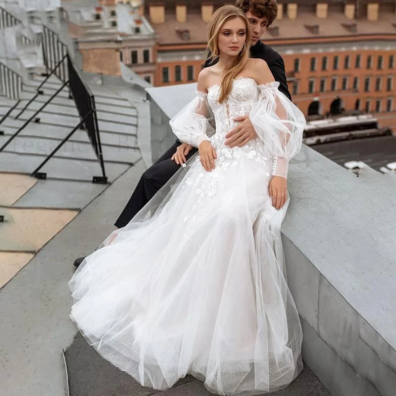 Женское кружевное свадебное платье в стиле бохо, расширяющееся книзу ТРАПЕЦИЕВИДНОЕ ПЛАТЬЕ со шлейфом и вышивкой