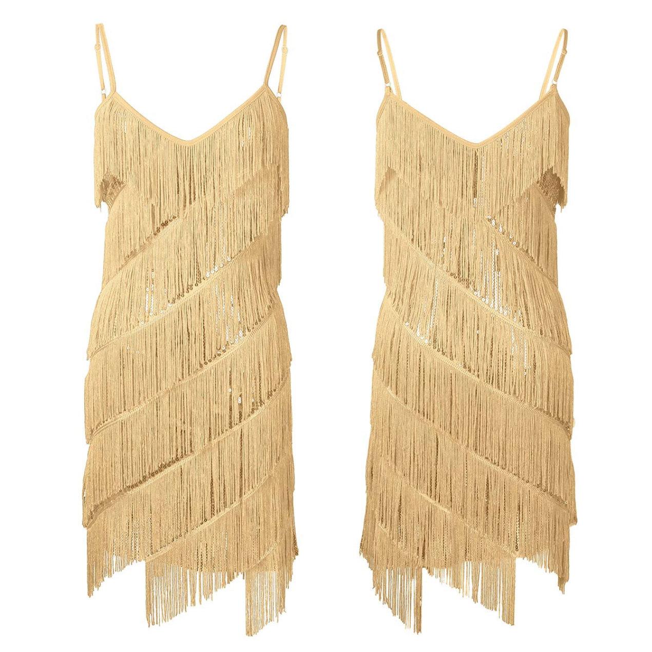 Женское латинское платье с блестками и кисточками, женские бальные платья для самбы, румбы, танго, латинского ча-ча One Size золотой