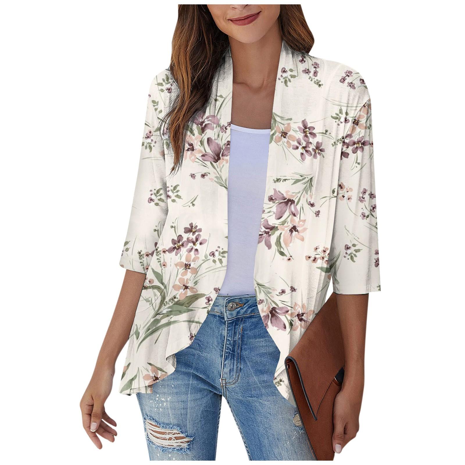 Женское легкое и тонкое пальто, кардиган с принтом и рюшами с рукавами три четверти XXL фиолетовый