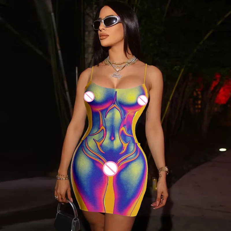 Женское летнее Мини-Платье на бретелях-спагетти с открытой спиной