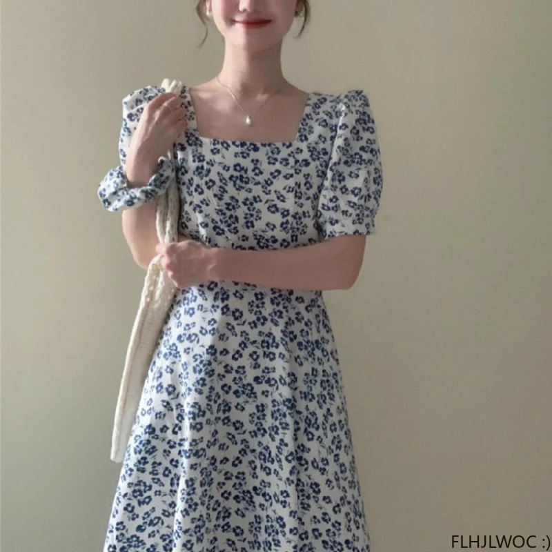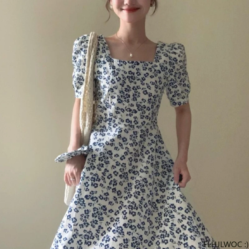 Женское летнее длинное платье с квадратным вырезом и цветочным принтом