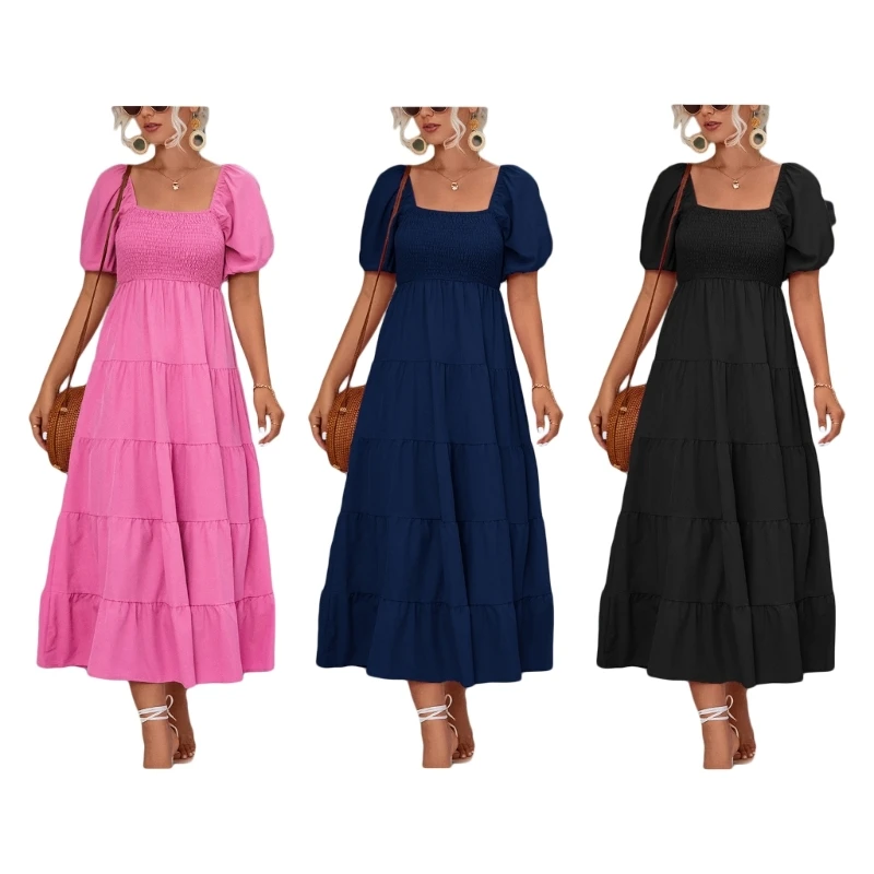 Женское летнее длинное платье-трапеция с пышными рукавами