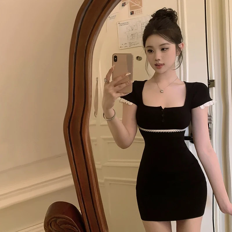 Женское летнее мини-платье с коротким рукавом и квадратным вырезом