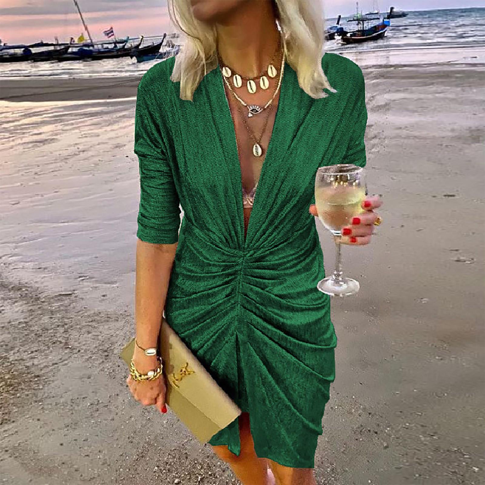 Женское летнее модное сексуальное вечернее платье для выпускного с V-образным вырезом и запахом на бедрах XL зелёный