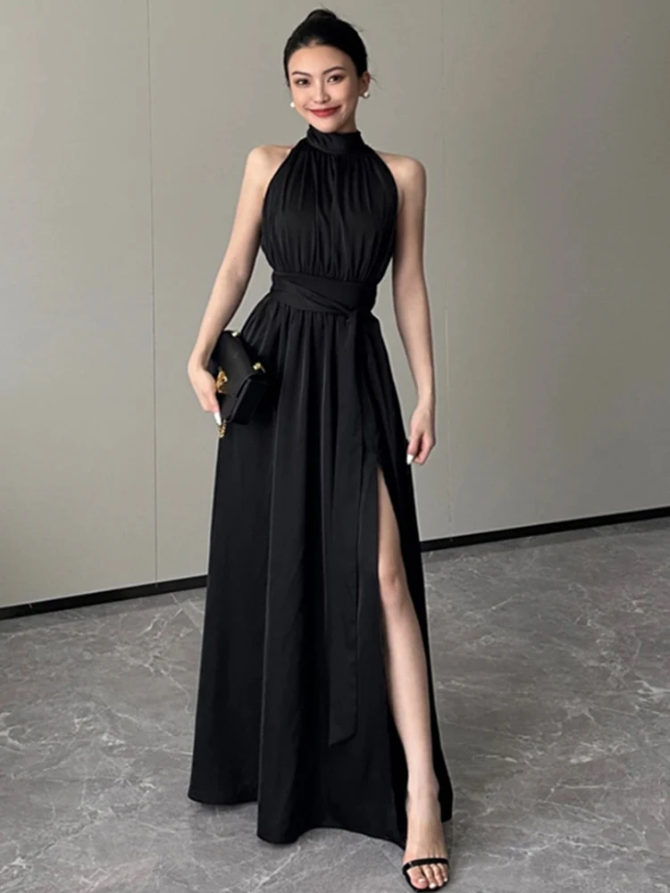 Женское летнее платье без рукавов, с круглым вырезом и открытыми плечами