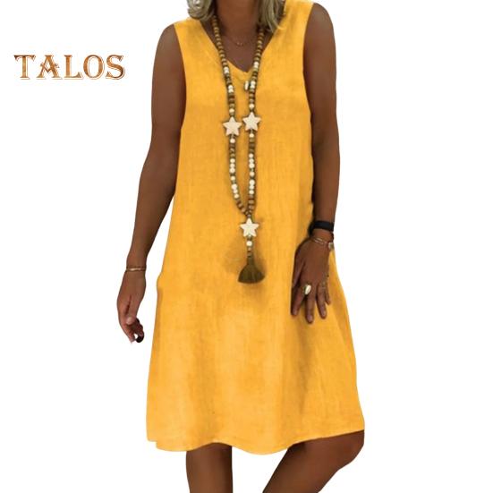 Женское летнее платье без рукавов с V-образным вырезом, А-силуэта, однотонное платье-миди длиной до колена, пуловер, жилет, пляжное платье для отдыха 2XL жёлтый