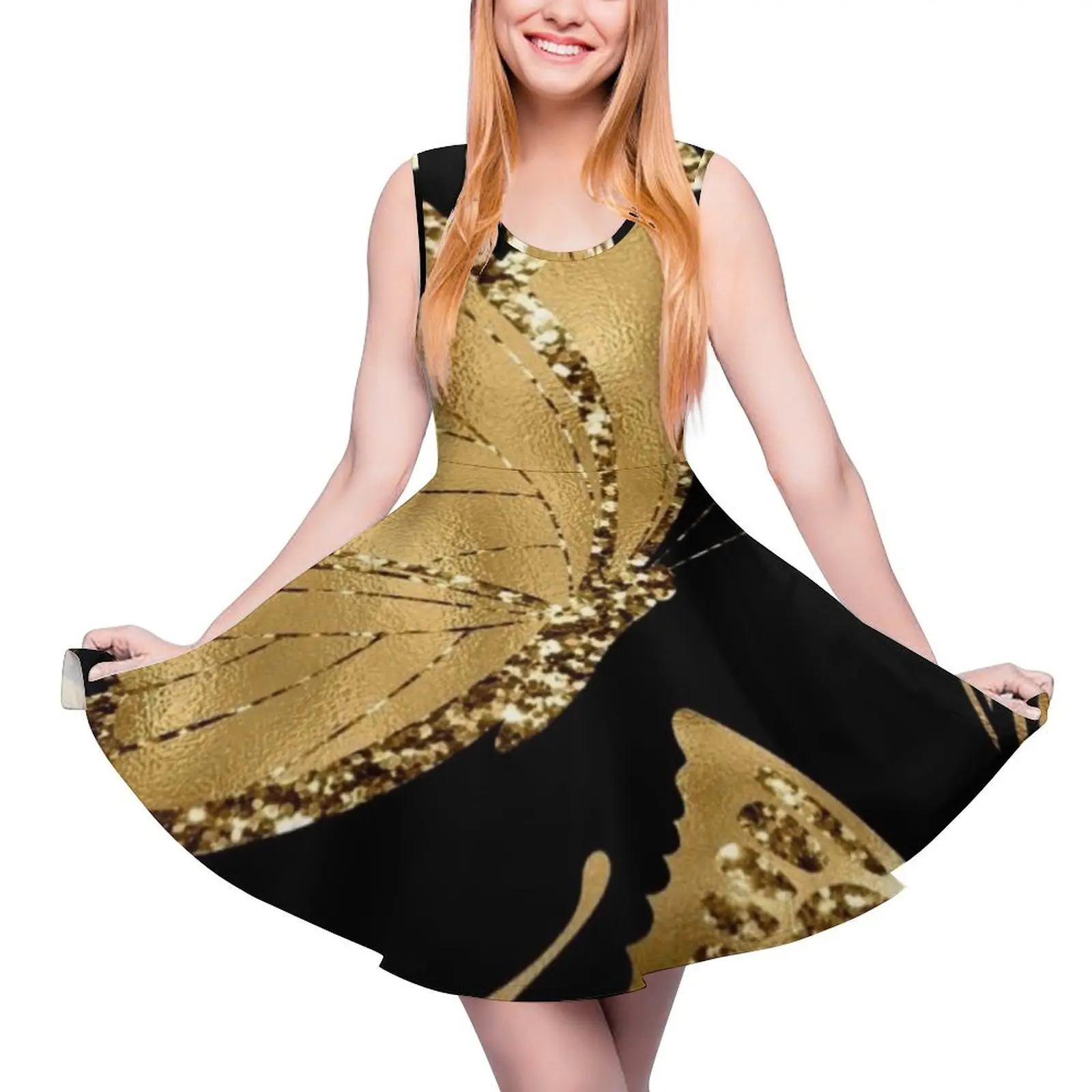 Женское летнее платье без рукавов, элегантное платье с золотыми бабочками, модель 2024 года