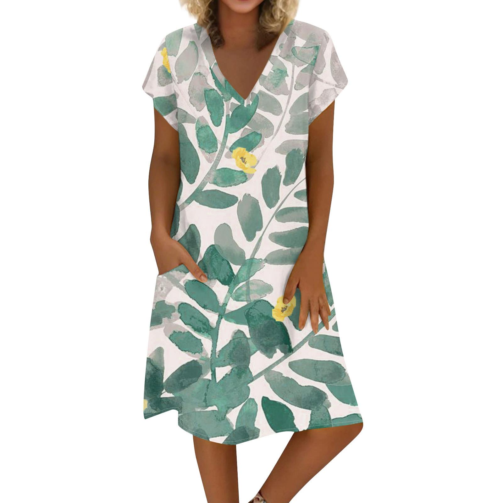 Женское летнее платье из хлопка и льна с V-образным вырезом и короткими рукавами L красный