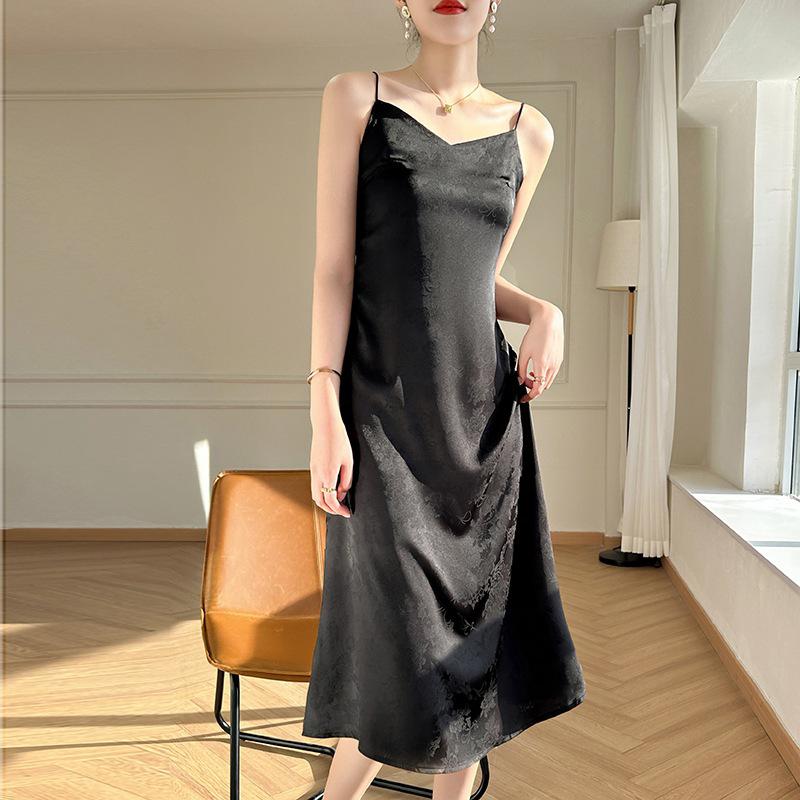Женское летнее платье-майка из ледяного шелка в облегающем французском стиле, 2025 M чёрный