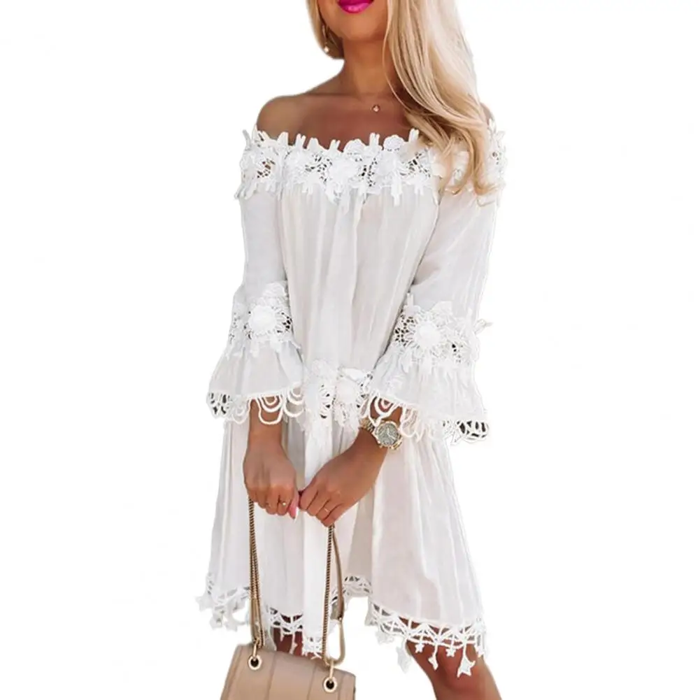 Женское летнее платье-миди с цветочной аппликацией и рукавом три четверти