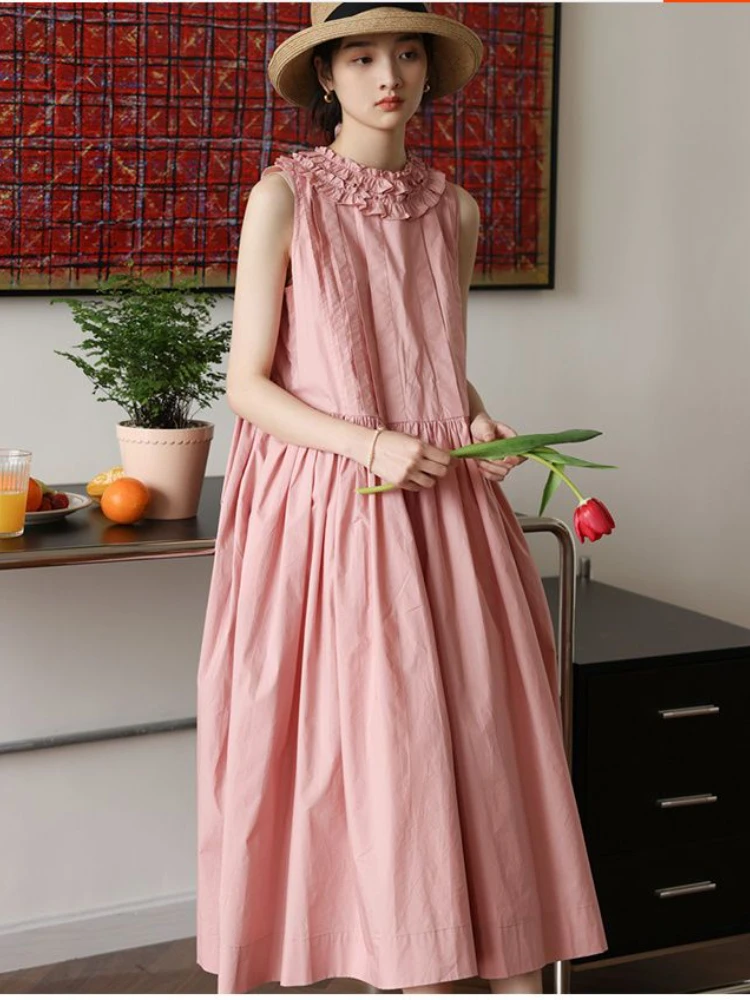 Женское летнее платье, новинка 2023, однотонное платье без рукавов с круглым вырезом, уличная одежда, женское черное платье, свободные модные деловые платья